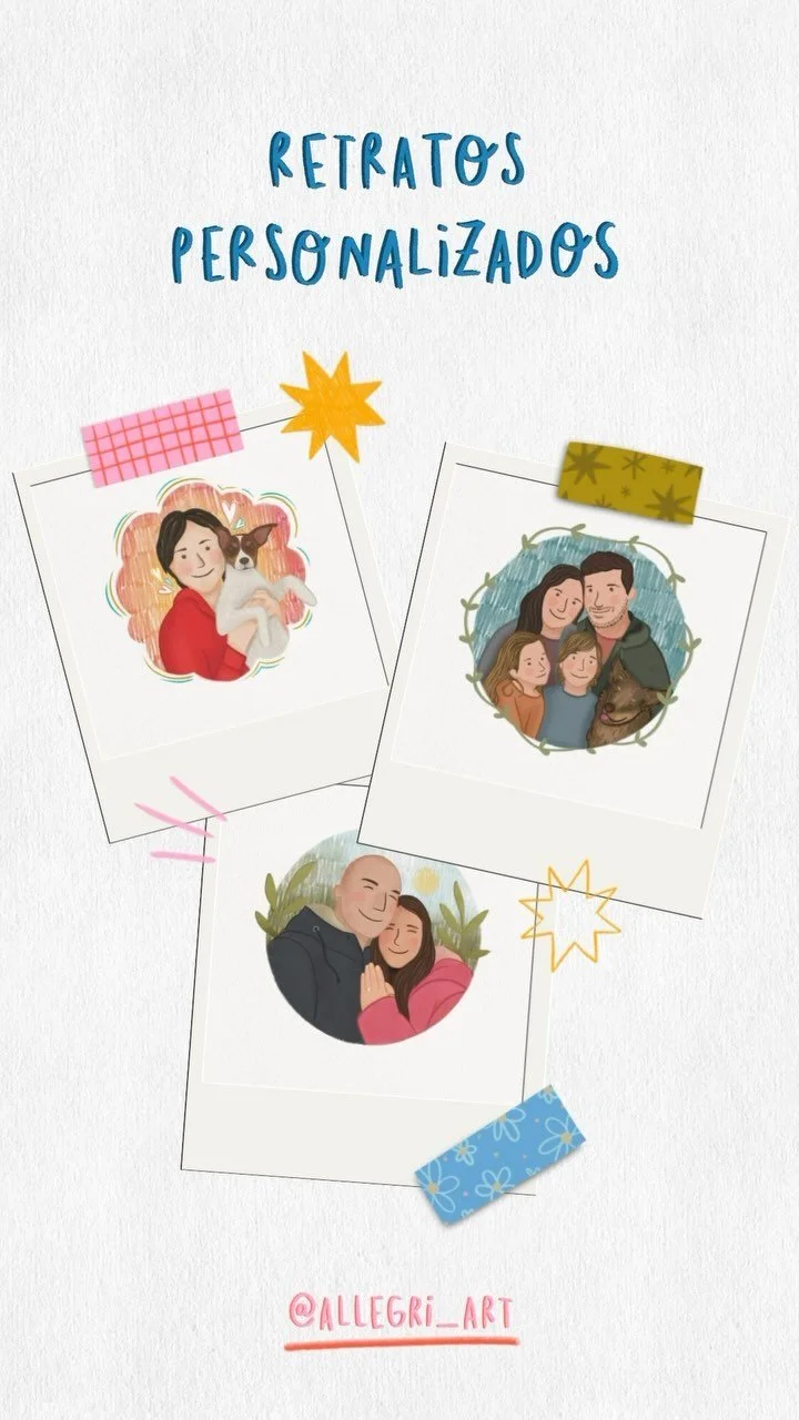 He trabajado como ilustradora freelance en proyectos de todo tipo: ilustraciones para la identidad visual de marcas (Perris Autolavado), sets de ilustraciones para bodas y haciendo retratos y comisiones personalizadas.